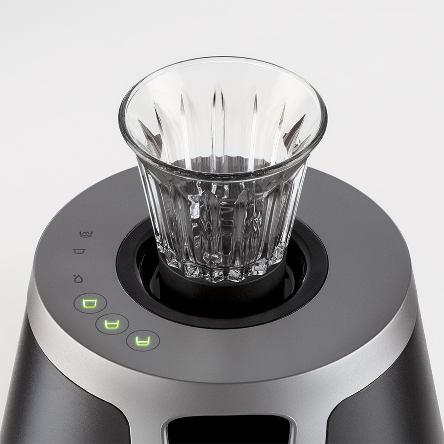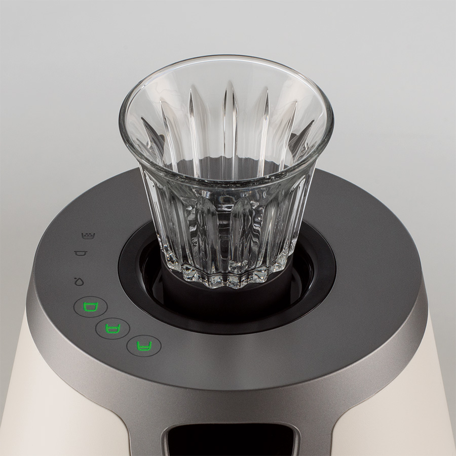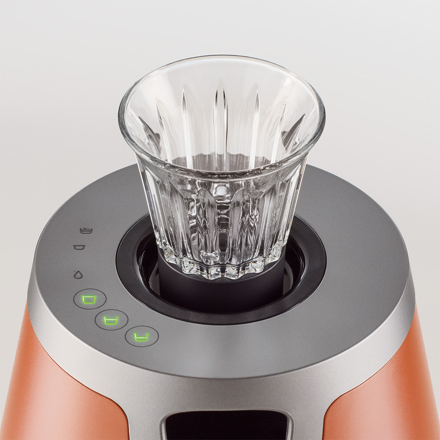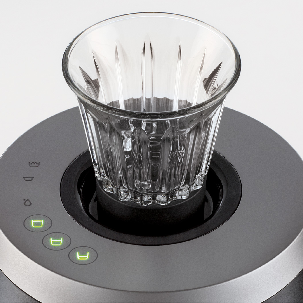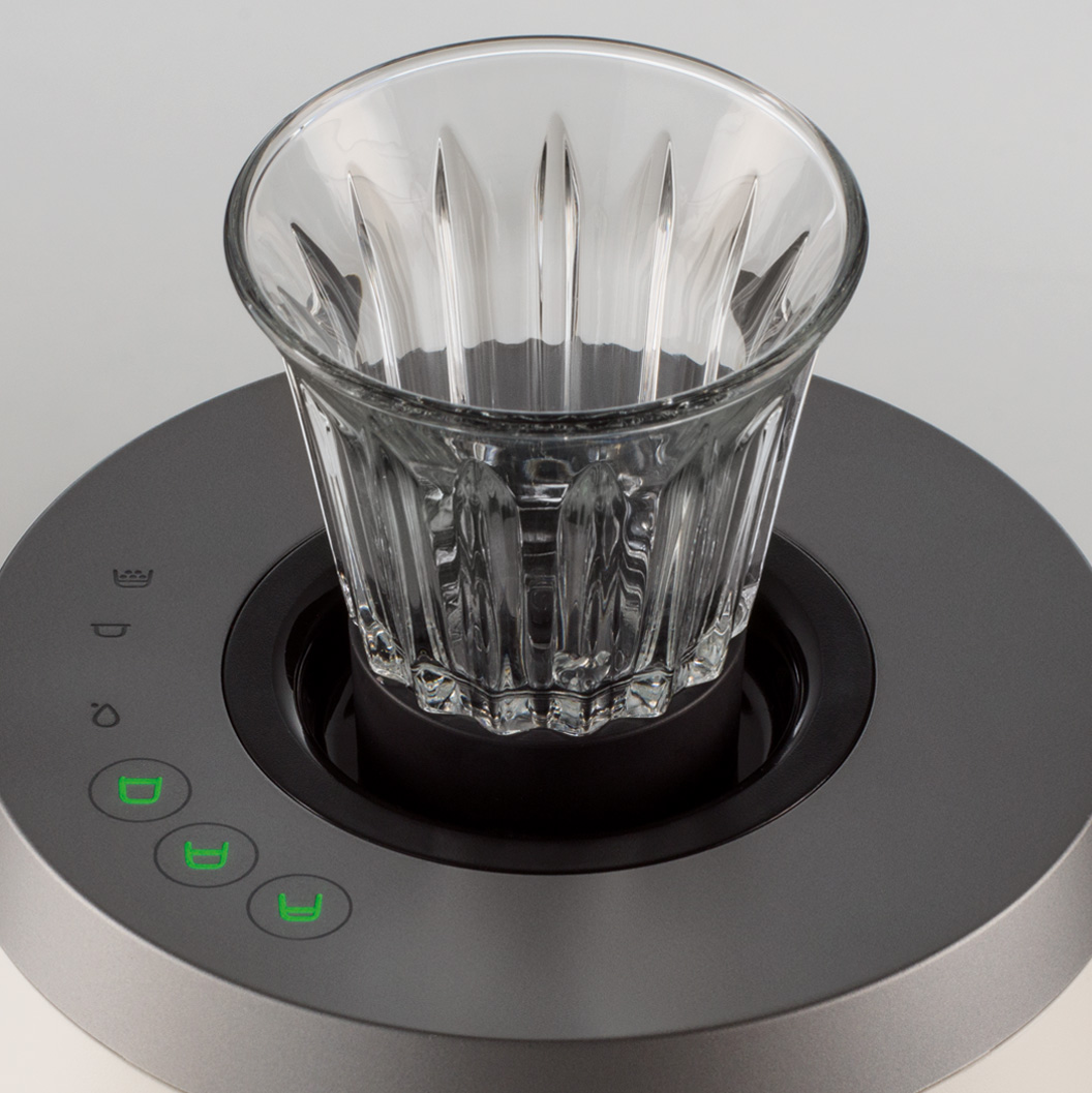 para a injeção do café pela base do copo.