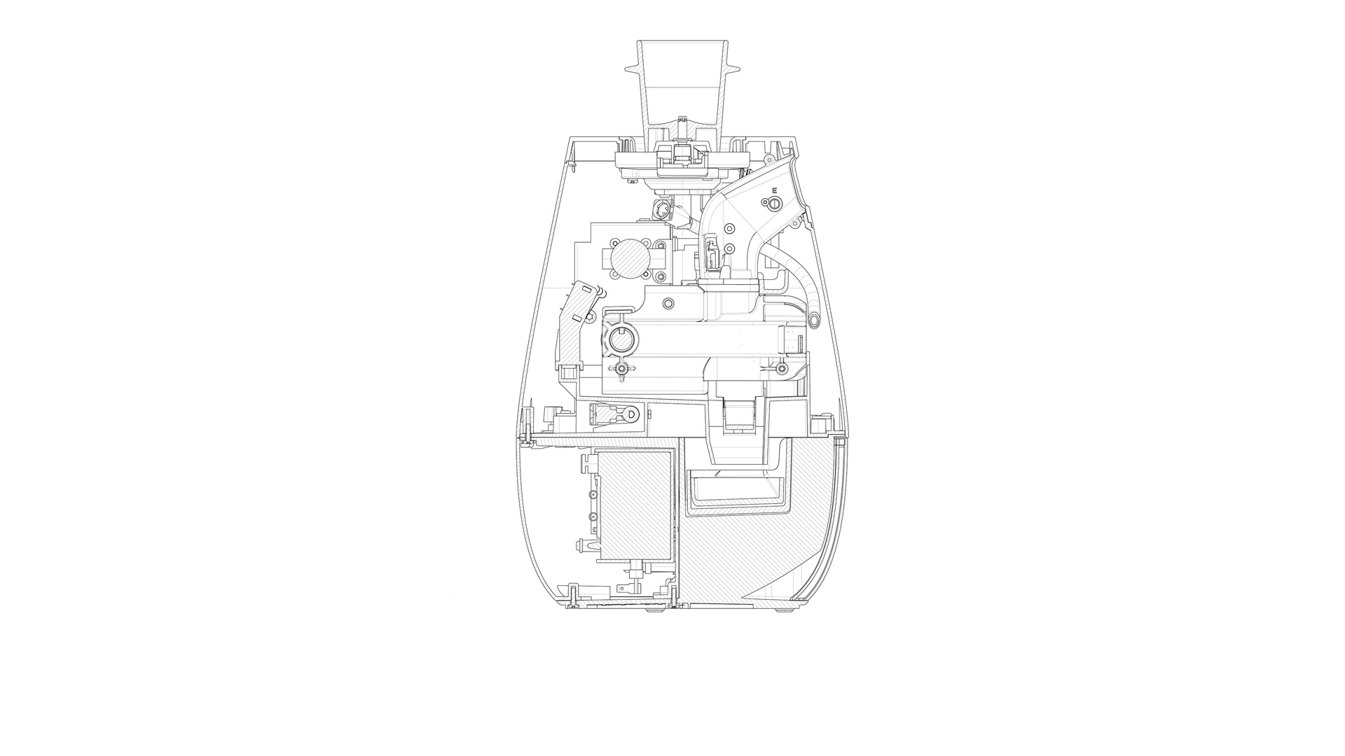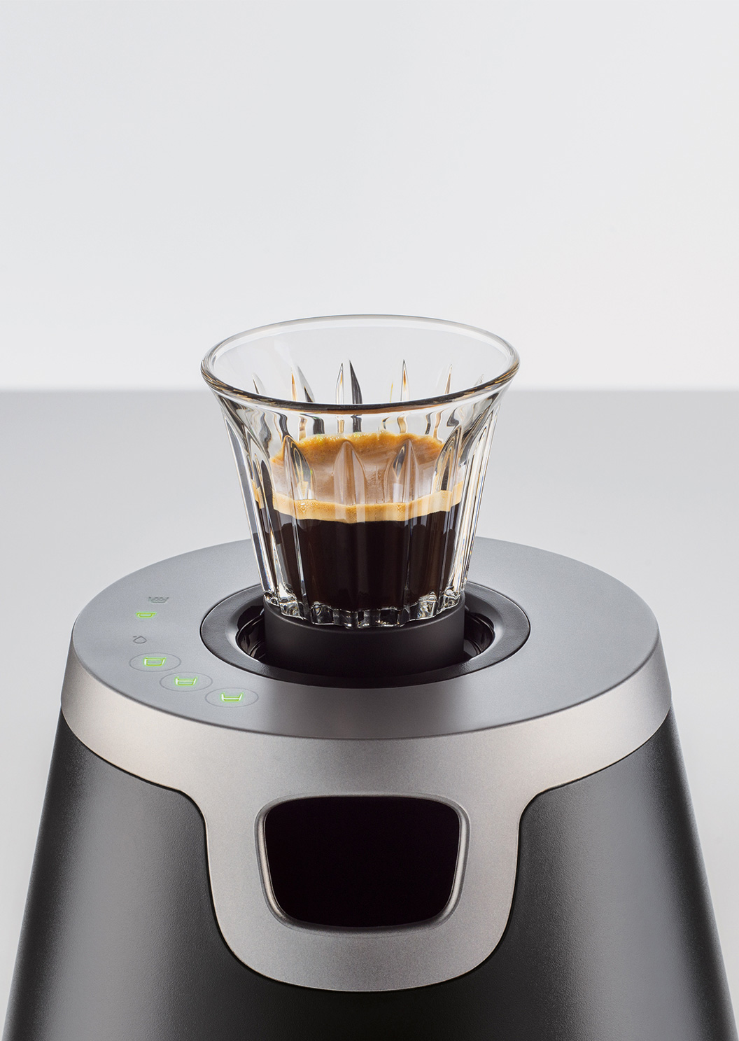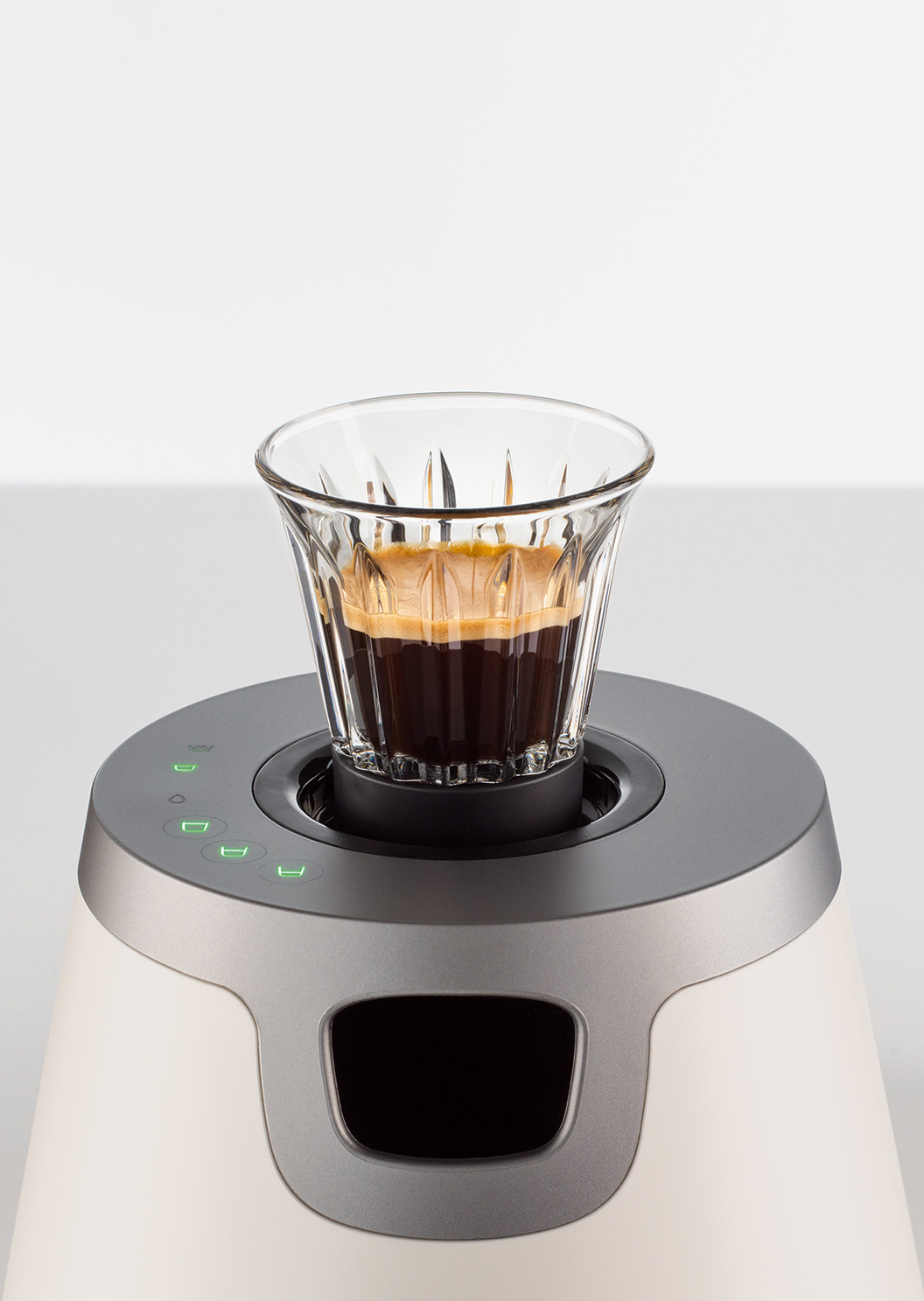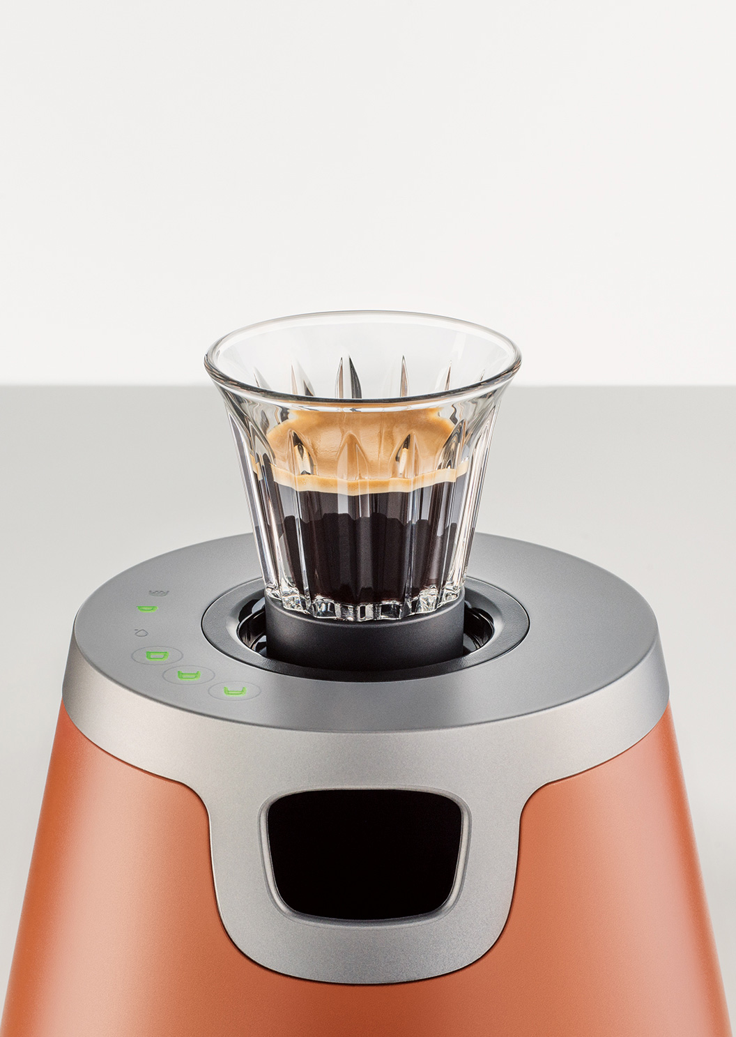 para a injeção do café pela base do copo.
